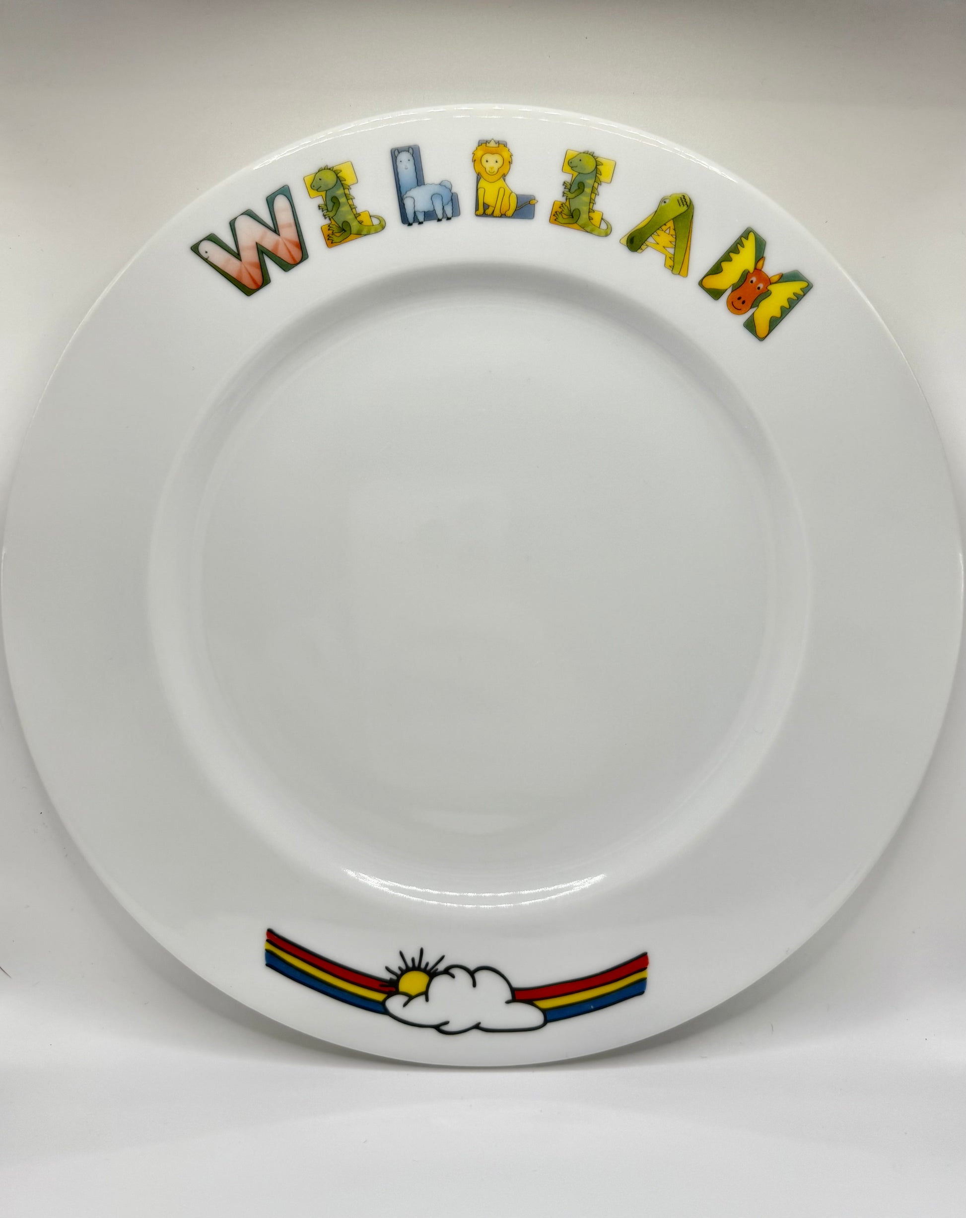Help your children celebrate their birthday with this personalized birthday plate! Cake never tasted so good on our classic white china 9.75" Rimmed Plate. Makes every birthday special. Please allow a week for shipping.